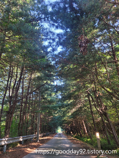 소나무 지붕으로 덮인 진입로가 신비로운 세계로 인도한다.