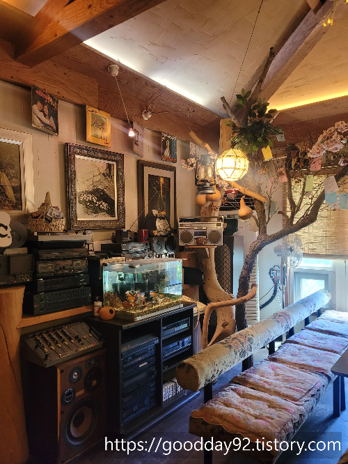 LP판과 DJ‑BOX로 신청곡을 들려주는 감성적인 음악 공간